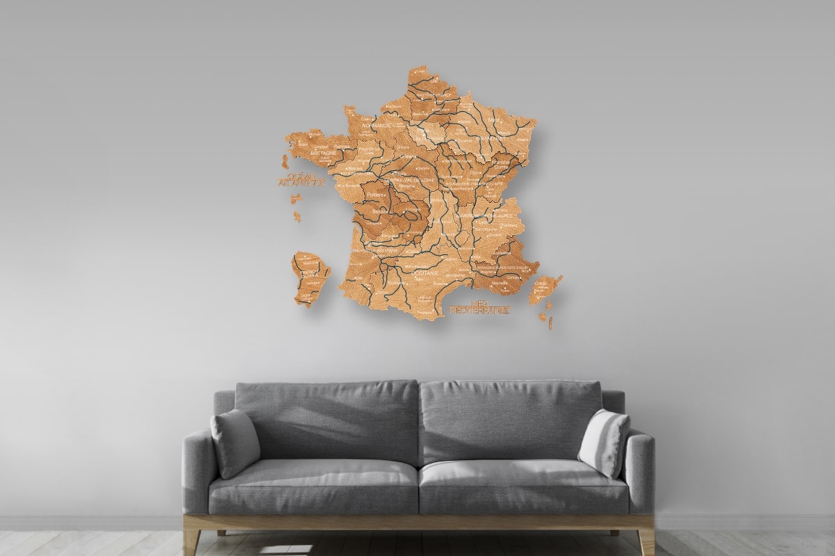 We know that. That’s why each France location map from the Gold edition is available in a range of sizes perfect for any room – from a compact bedroom or home office to living room, hallway, and even various commercial spaces (cafés, offices, boutique hotels, coworking spaces, travel agencies, etc.).