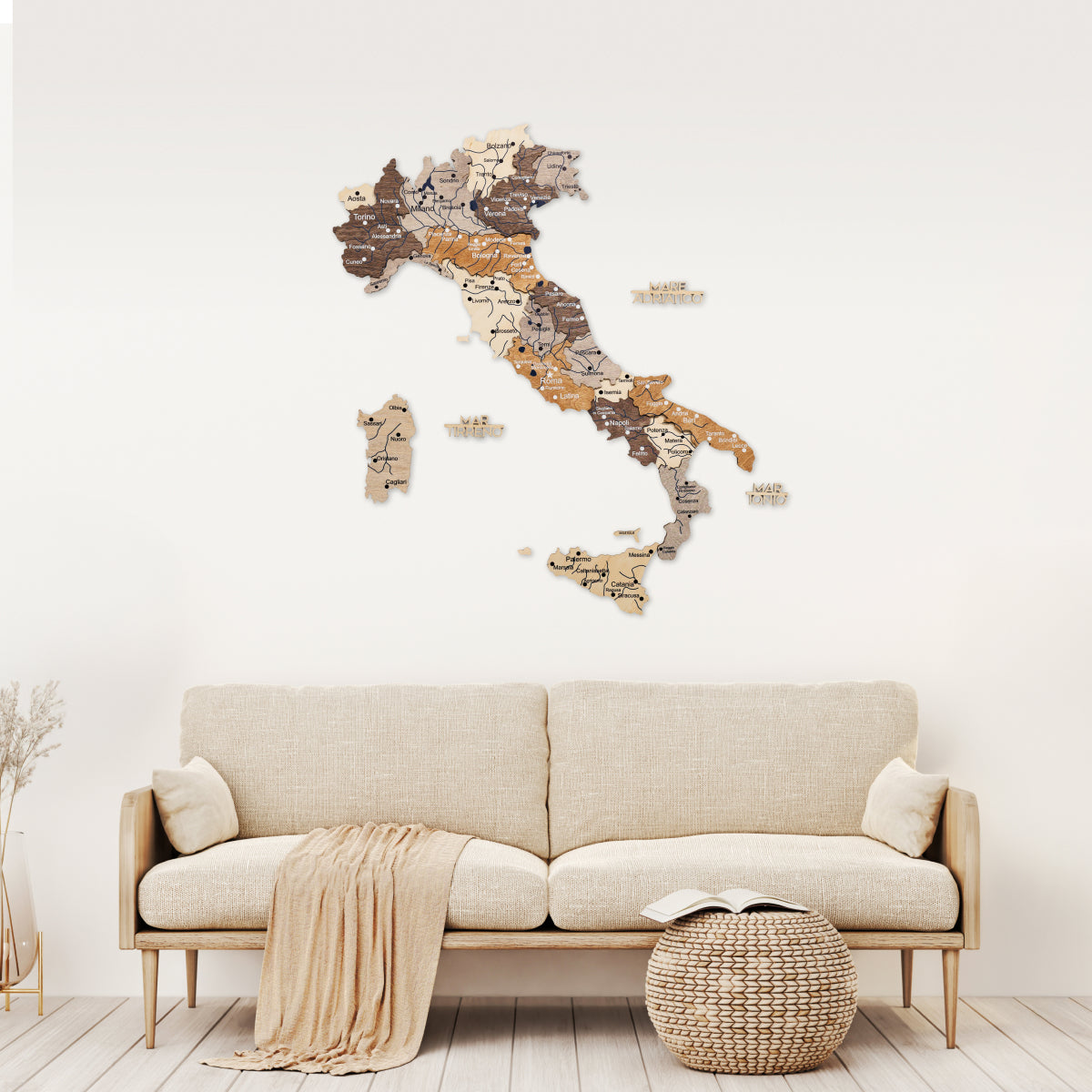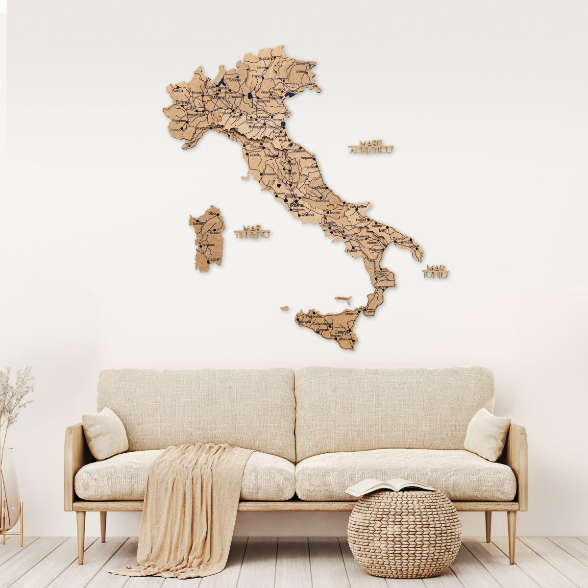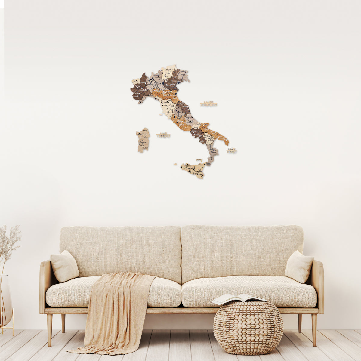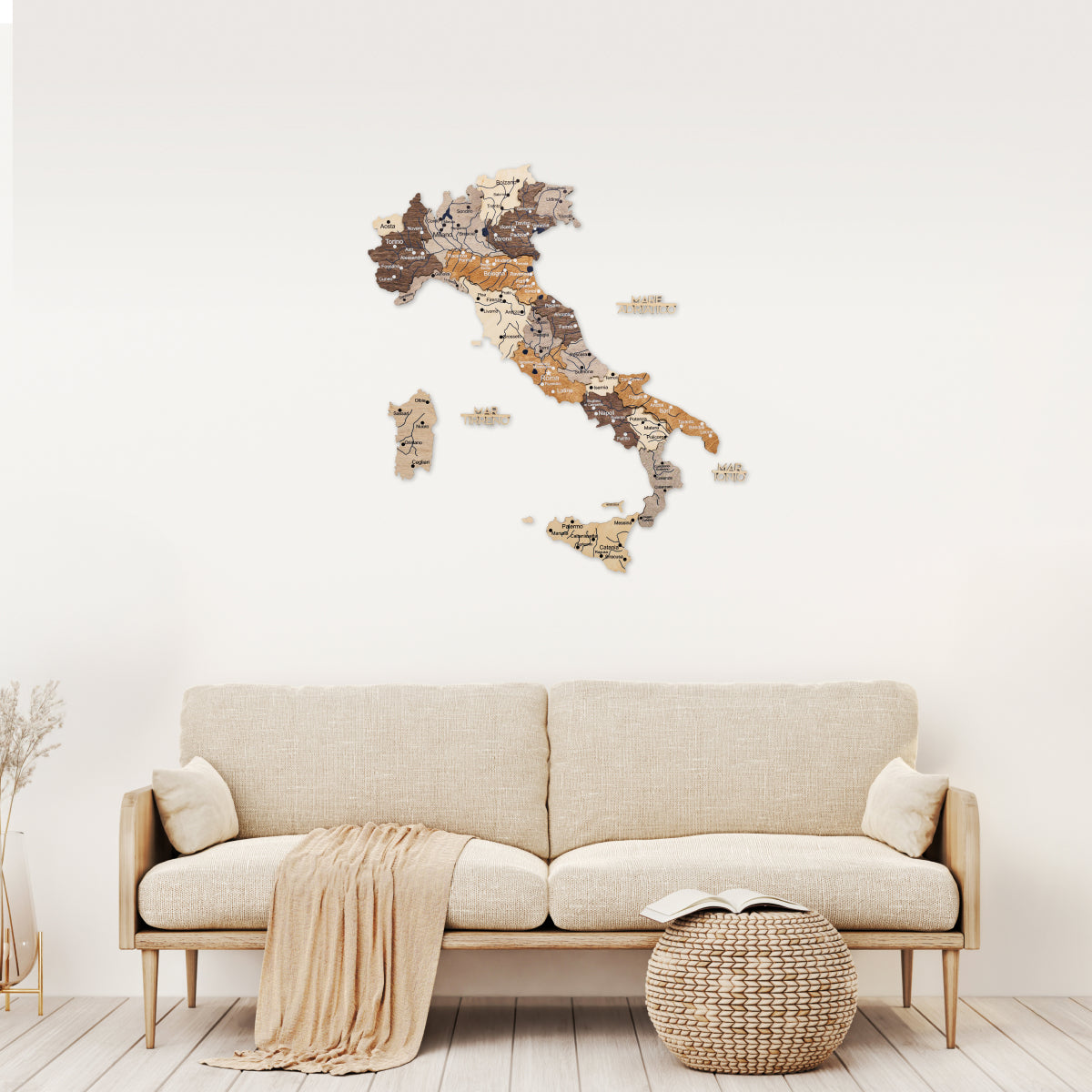 Discover vibrant craftsmanship with the Wooden Map of Italy – Gold by Enjoy The Wood. This detailed wooden wall map captures the spirit of Italy through rich colors, precise laser cutting, and exceptional handmade quality. Every piece highlights your favorite cities and travel memories—from Rome to Milan, Florence, and beyond—turning your wall into a story of adventure and inspiration.