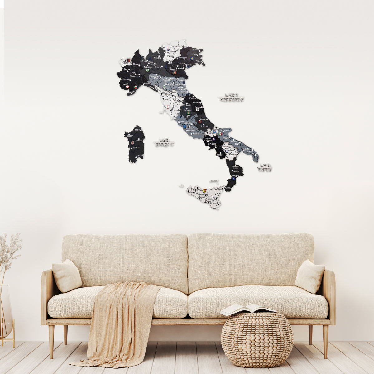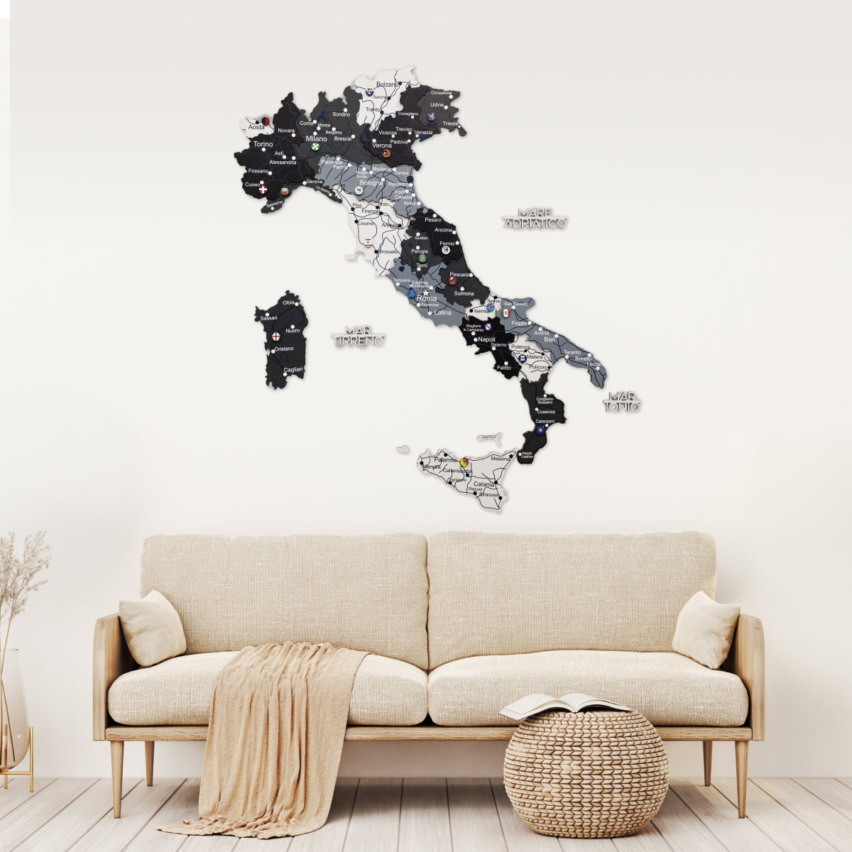 Discover vibrant craftsmanship with the Wooden Map of Italy – Nordik by Enjoy The Wood. This detailed wooden wall map captures the spirit of Italy through rich colors, precise laser cutting, and exceptional handmade quality. Every piece highlights your favorite cities and travel memories—from Rome to Milan, Florence, and beyond—turning your wall into a story of adventure and inspiration.