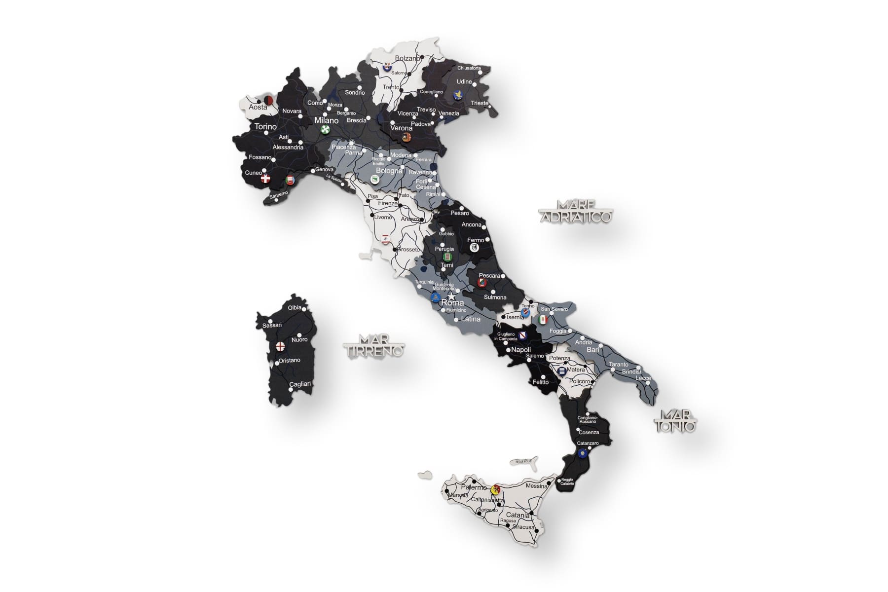 Made from natural birch plywood with a thickness of 6–18 mm, the map showcases beautiful wood grain and a tactile relief. The multicolor finish brings Italy’s regions to life—from the Alps to Sicily—adding warmth and energy to modern interiors and travel-inspired decor.