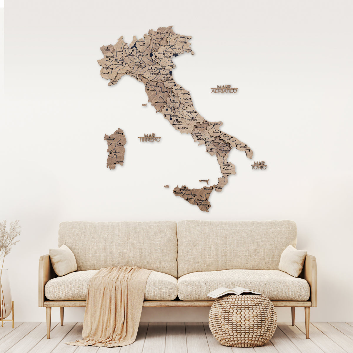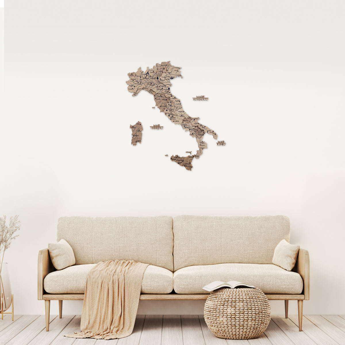 Discover vibrant craftsmanship with the Wooden Map of Italy – Terra by Enjoy The Wood. This detailed wooden wall map captures the spirit of Italy through rich colors, precise laser cutting, and exceptional handmade quality. Every piece highlights your favorite cities and travel memories—from Rome to Milan, Florence, and beyond—turning your wall into a story of adventure and inspiration.