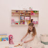 This magnificent toy storage organizer wooden is designed for high impact and efficiency. It offers substantial capacity with impressive dimensions of 89.6 × 72.0 × 10 cm (35.28 × 28.35 × 3.94 in), providing ample shelving for books, treasures, and small toys.